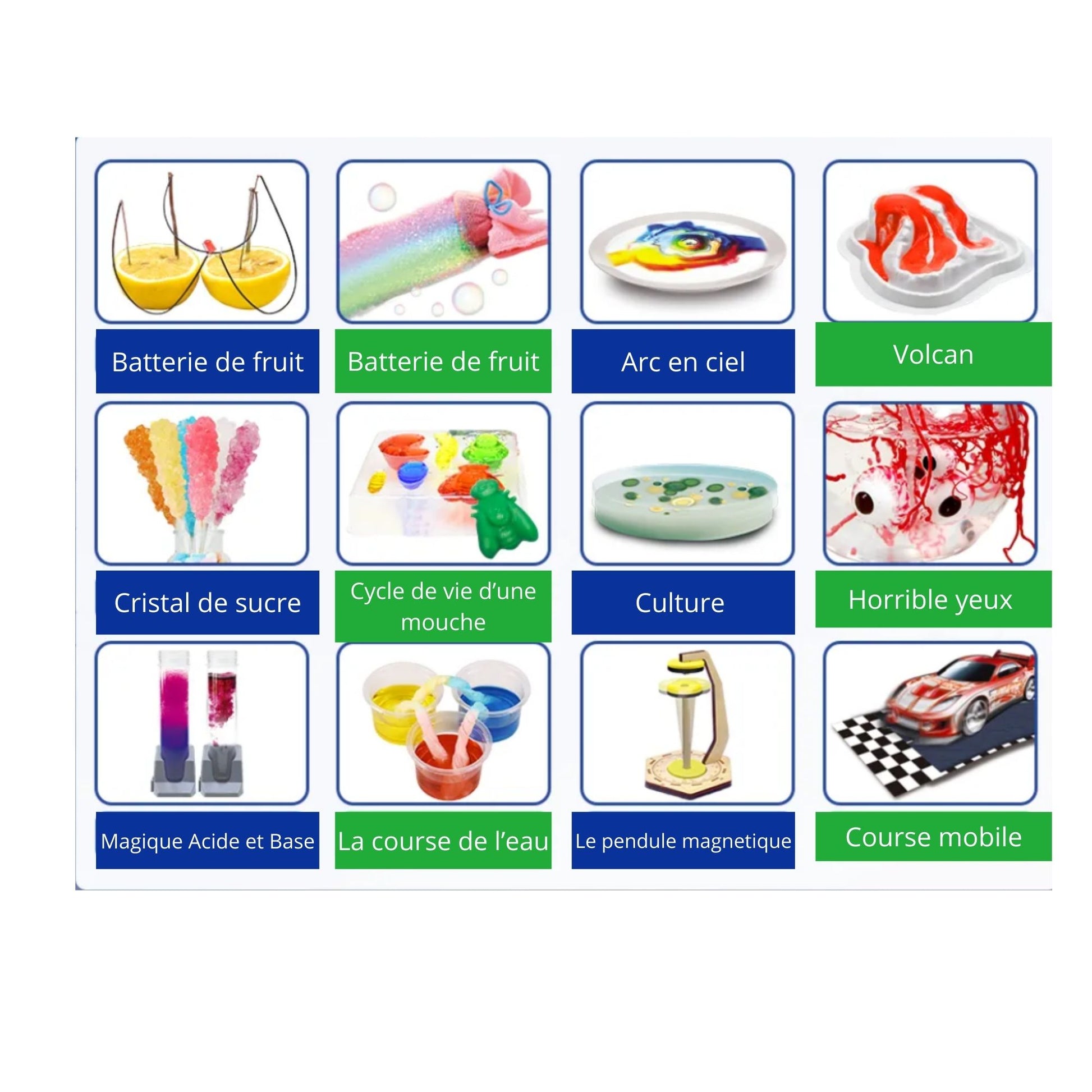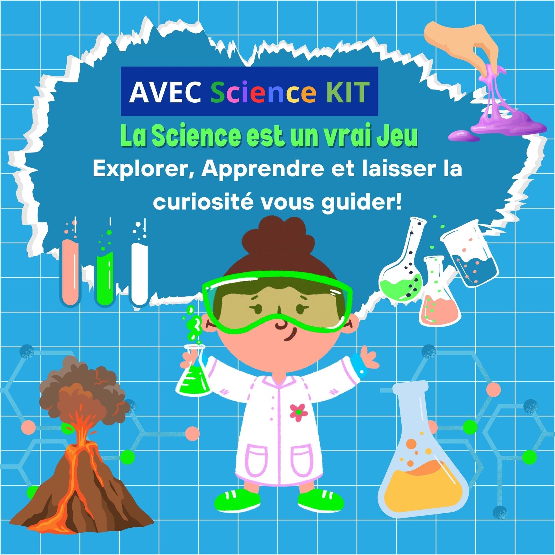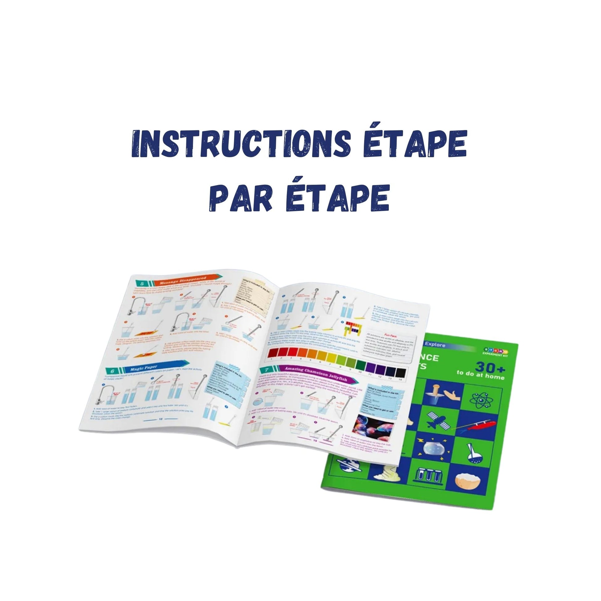- Expériences variées : Le kit propose une multitude d'expériences amusantes et simples à réaliser : création de slime, observation des réactions chimiques, découverte des couleurs, etc.