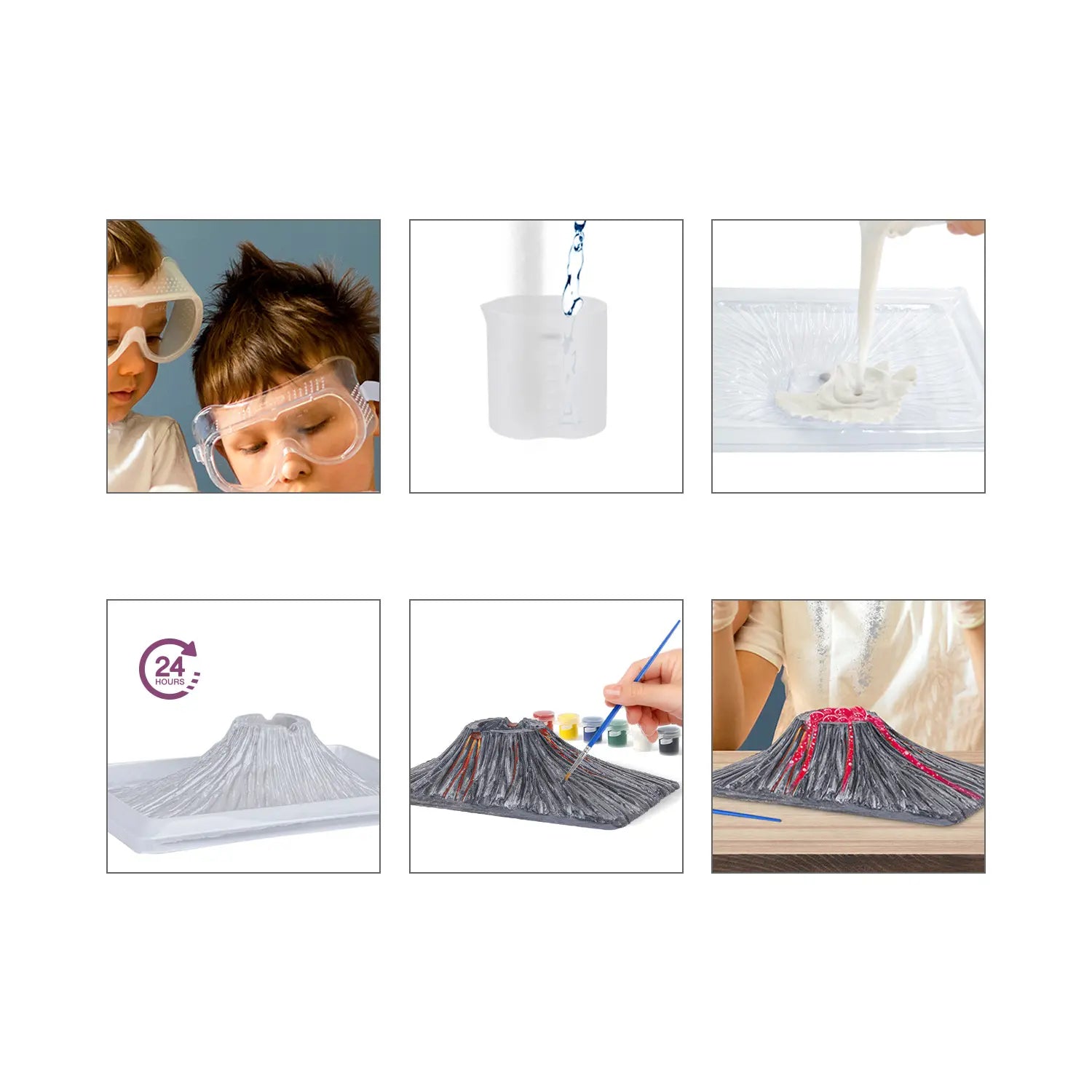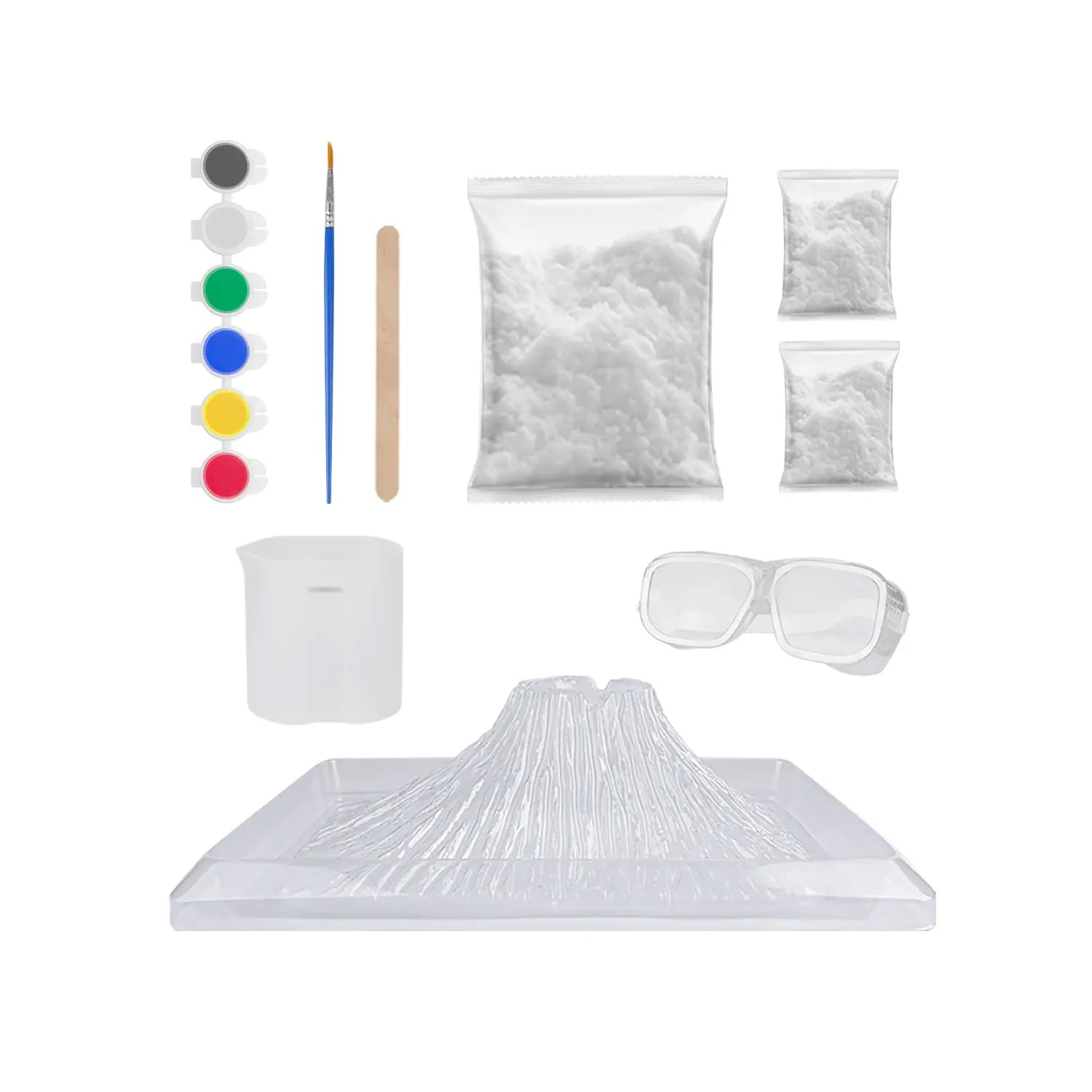 Ce kit combine l'art et la science pour une expérience d'apprentissage unique et passionnante. Les enfants peuvent personnaliser leur propre volcan en le colorant , puis le faire entrer en éruption grâce à une réaction chimique amusante et sans danger .